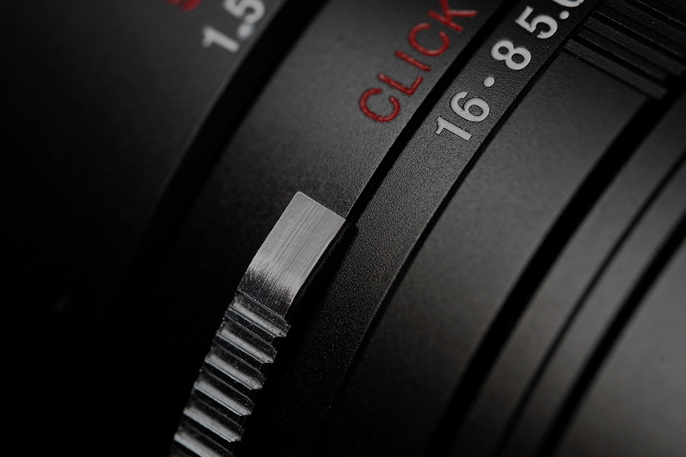 L’anello di apertura ha un meccanismo che permette al fotografo/videografo di scegliere se avere dei click stop sull’anello oppure un’apertura continua. Il cambio di modalità non provoca alcun effetto visibile durante le riprese.