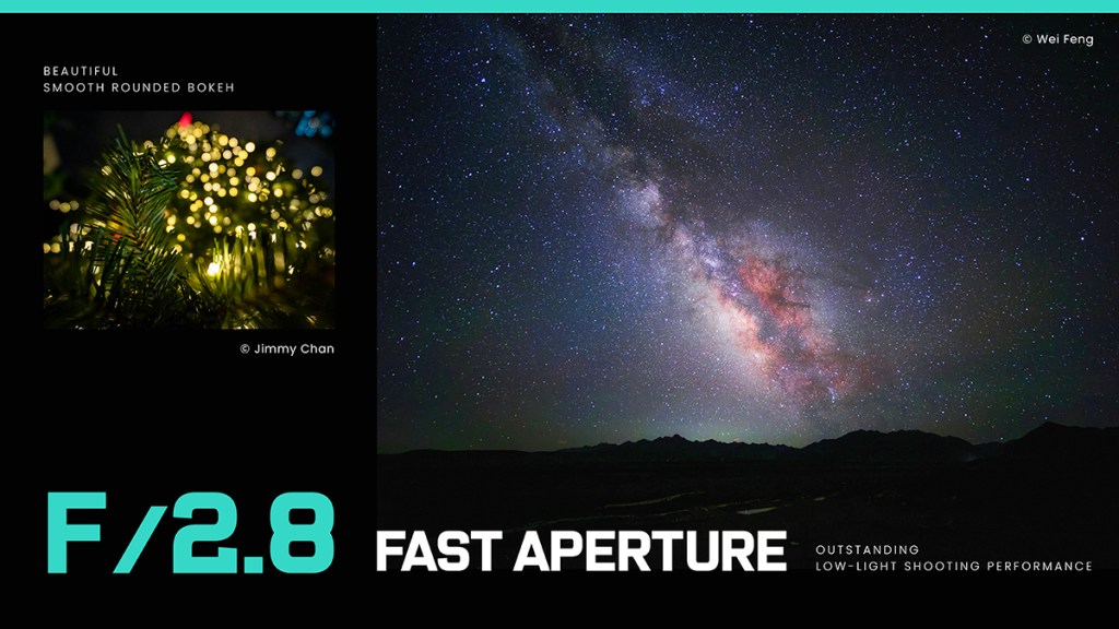 L’angolo di campo ultra ampio di 110° offre una prospettiva ideale per fotografia di paesaggio, interni, architettura e astrofotografia.